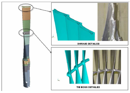 叶片长1220mm,有两个对外连接点(shroud 和 tie boss)。