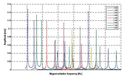 盘面振动的每一个峰值都可以通过直接测试获取(固定转速,扫频激振),或者通过调整激振频率,从FFT图上获取峰值。